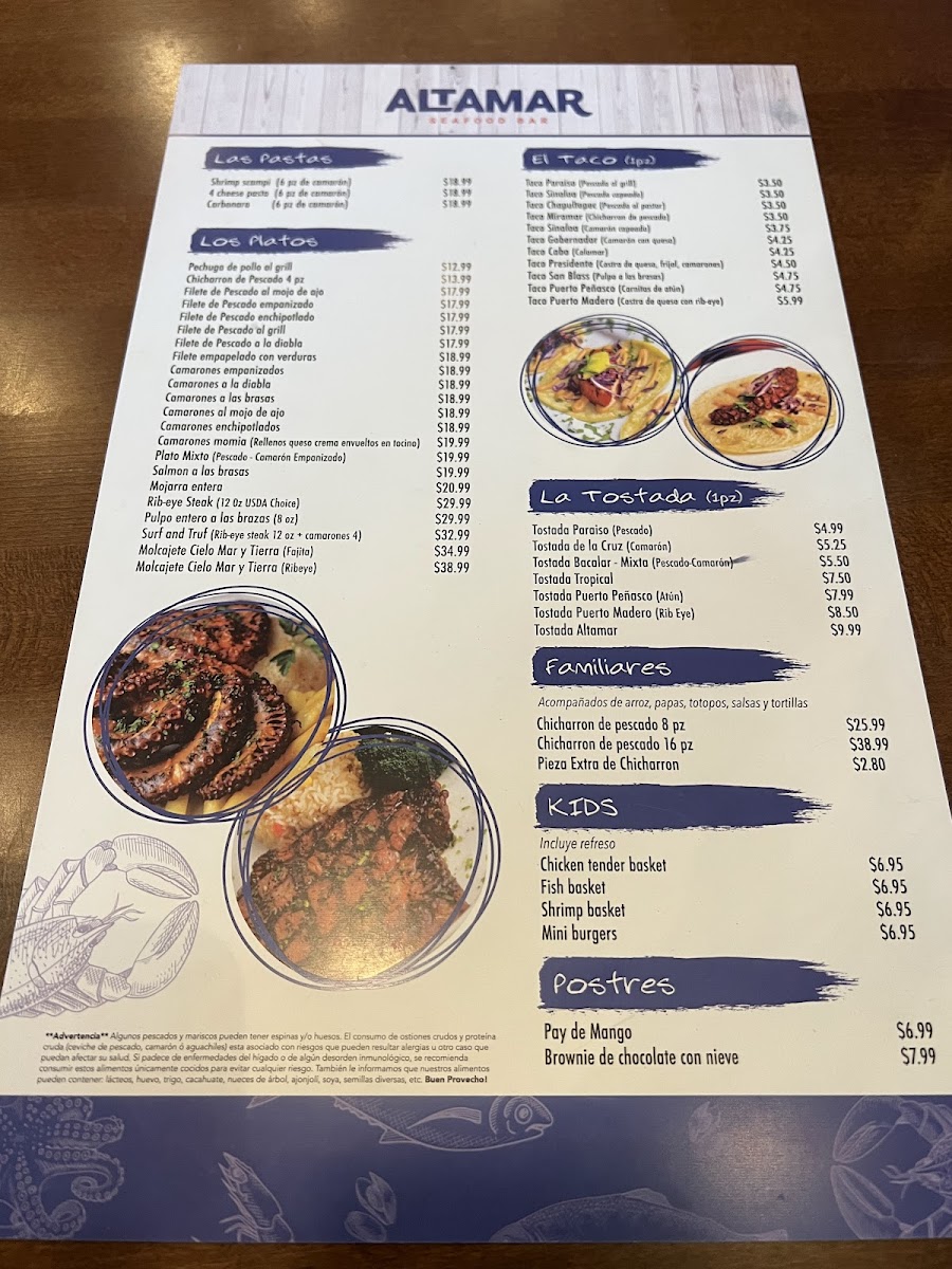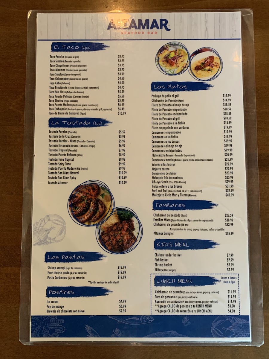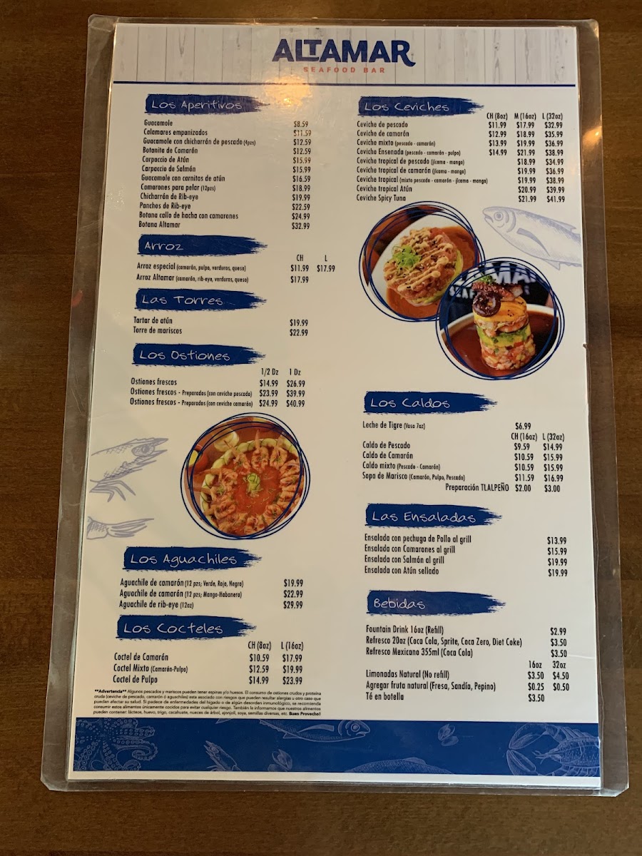 Altamar Seafood & Bar Menu